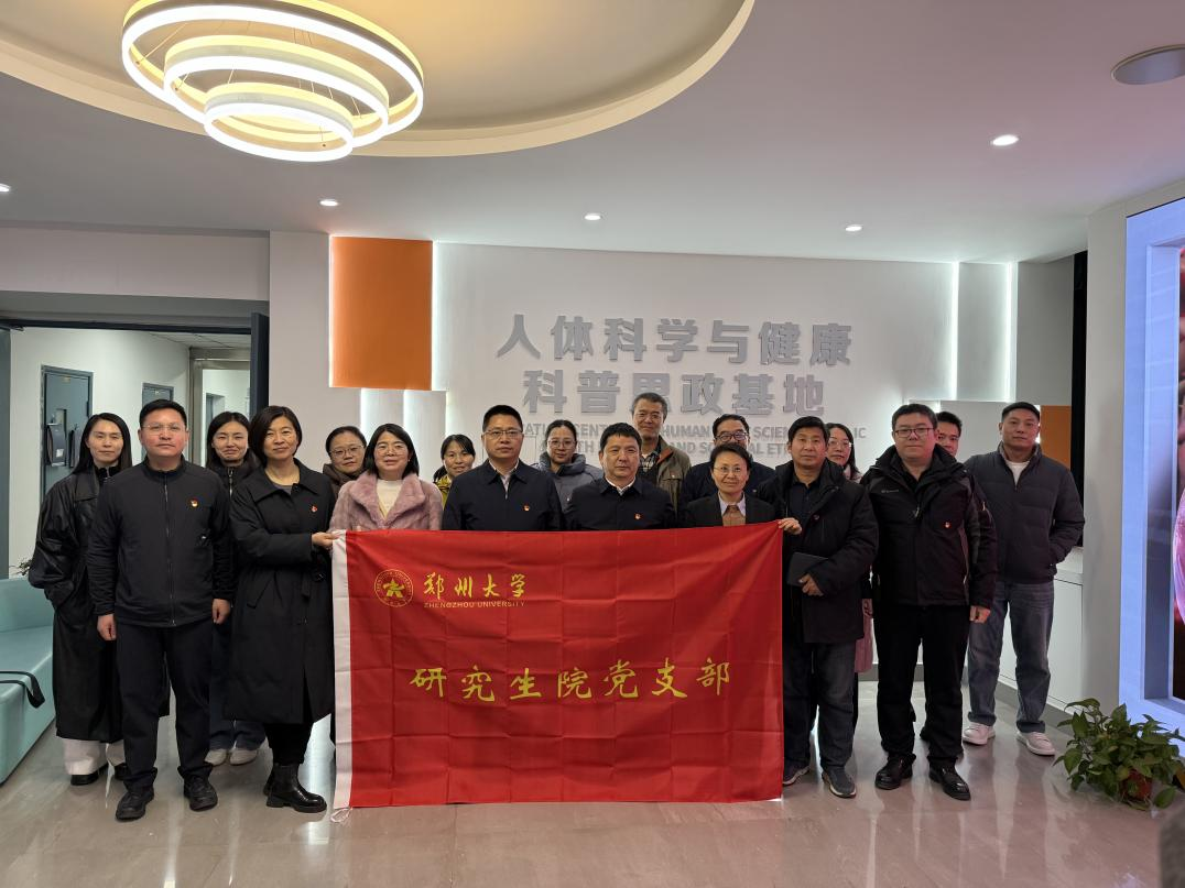 为深入推进中央八项规定精神主题教育走深走实,强化党员同志的科学素养与责任担当,12月26日,研究生院党支部组织全体党员走进郑州大学基础医学院,赴人体科学与健康科普思政基地开展沉浸式学习活动,在直观感受生命奥秘与医学魅力中,筑牢思想根基、凝聚奋进力量。